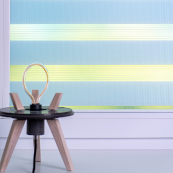 В настоящее время рольшторы типа День-Ночь коллекции Soft голубого цвета (артикул цвета s119) – является самой оригинальной и популярной моделью. И хотя цены на данную модель слегка выше, чем на другие, это полностью компенсируется крайне интересным дизайном. Основными составляющими полотна являются чередующиеся полупрозрачные и прозрачные тканевые полоски. Это даёт возможность регулирования уровня освещения посредством смещения тканей относительно друг друга, при этом вам не потребуется поднимать всю штору.