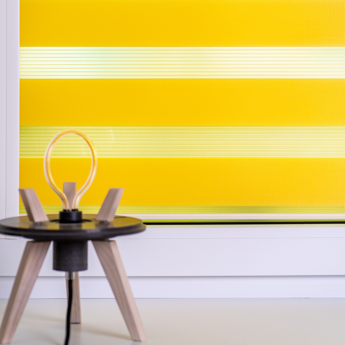 Рольшторы «День-Ночь» коллекции Soft желтой расцветки (артикул цвета s10) в интерьере